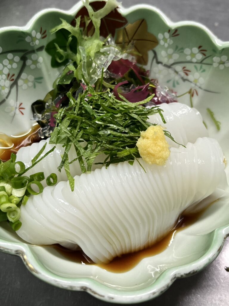 - そばがき/ 板わさ/ 田楽こんにゃく/ イカそーめん/ マグロ山かけ