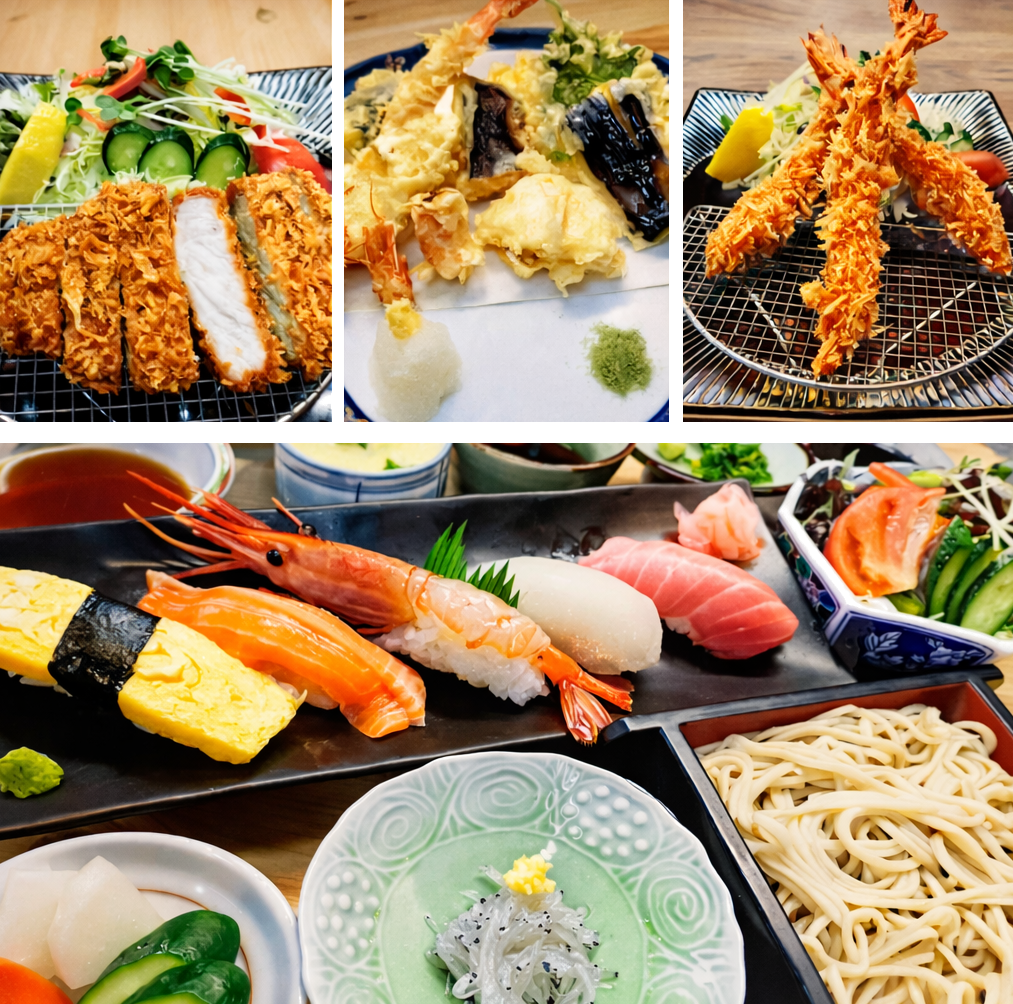 市場直送の鮮魚、丁寧に揚げた天ぷら、そして上質な国産ひれ肉やブランド豚「萬幻豚」を使用したカツなど、食事としての満足感をしっかりと感じていただける内容です。