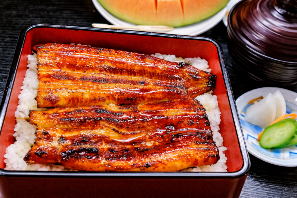 国産活鰻を一尾ずつ店内で捌き、蒸しを入れてふっくらと仕上げた江戸焼き。
