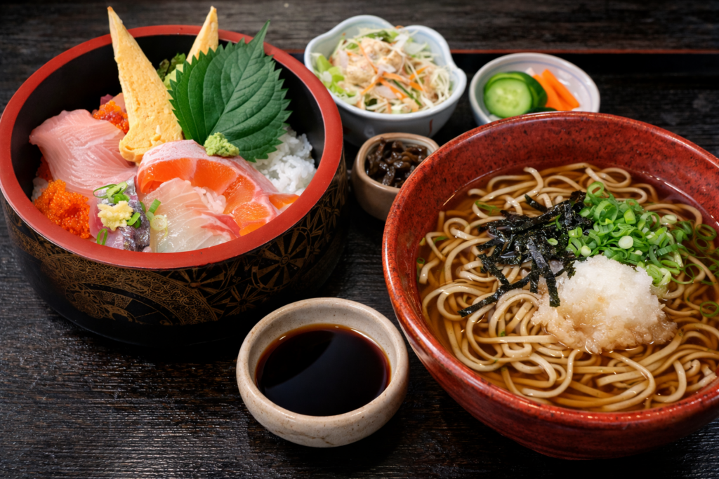 - 富士おろしミニ海鮮丼セット(※かき揚げ丼、角煮丼もあります)